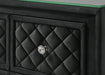 Indulge in timeless elegance and dramatic sophistication with this stunning bedroom collection, designed to make a bold statement. The centerpiece features an exquisitely tufted headboard with luxurious upholstery and intricate nailhead trim, exuding opulence and grandeur. Coordinating pieces showcase diamond-patterned tufted accents, mirrored details, and polished hardware, blending classic design with modern glamour. With ample storage and impeccable craftsmanship, this ensemble offers both style and practicality, creating a lavish retreat that embodies refined comfort and striking aesthetics. Perfect for those seeking a bedroom that radiates luxury and charm.