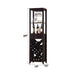 The Austin Wine Cabinet is a contemporary, stylish solution to storing a small wine collection and makes it easier than ever to pop open a bottle of vino when the occasion arises. Display delicate crystal wine glasses at the top in the wine glass rack, a few prized bottles of spirits underneath, corkscrews in the drawer, and the rest of your bottles in the latticed rack at the base. A small cutting board pulls out and is ideal for serving cheese and charcuterie. The unit is made of MDF with dark brown wenge eco-friendly rubber wood veneer. To clean, wipe with a dry cloth