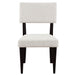 The Colvin Side Chair brings elegant comfort to dining, office, or accent areas. Wrapped in an exquisite eggshell polyester cover and sharply tailored with a box seat, this chair features a gracefully shaped back and natural black tapered, tubular legs, creating a sleek and cushioned seating experience that supports you for hours. The channeled texture of the cover adds a sensory element, enhancing the visual appeal and tactile satisfaction of your space. Built for lasting durability, the Colvin Side Chair boasts corner-blocked joints and solid wood legs, ensuring it remains a stylish and sturdy addition to your home for years to come.