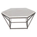 - Constructed of hexagonal white marble tops and powder-coated coffee iron base