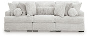 Details Includes 3 modular pieces: left-arm facing corner chair, armless chair and right-arm facing corner chair, "Left-arm" and "right-arm" describe the position of the arm when you face the piece, Modular pieces can float anywhere; sides are finished (with no connectors), Versatile modular pieces fit together in a variety of configurations, Corner-blocked frame, Loose seat and reversible back cushions; high-resiliency foam cushions wrapped in poly fiber, Includes throw pillows, accent pillows, decorative round pillows and lumbar pillows; pillows with soft polyfill, Polyester upholstery, Low-profile legs with faux wood finish , Platform foundation system resists sagging 3x better than spring system after 20,000 testing cycles by providing more even support, Smooth platform foundation maintains tight, wrinkle-free look without dips or sags that can occur over time with sinuous spring foundations