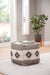 Kick up your feet with these handwoven pieces of fun! Poufs are great as a footrest, for extra seating or even to use as a pillow when laying on the floor. These stuffed, upholstered pieces are versatile and feature custom designs on each piece. The Hakim features an embroidered triangular pattern with contrasting borders on top and bottom. Comfortable and casual, Hakim softens a room while adding comfort and functionality to your style.
