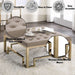 Add this Damien cocktail ottoman and end table to create a luxurious look for you living room. The sleek ottoman will match perfectly with any of your elegance sofa or be the eye catching accent piece in any room. Ottoman featuring bottom tufted fabric top, you can either display and storage accessories or sit comfortably on it. End table featuring 5mm clear tempered glass top, you can display and storage accessories on it. The geometric metal base in champagne provides a durable construction and also elegant look. This collection will be the excellent piece for any decor. Ottoman measures 36" x 36" x 18"H. End table measures 24" x 24" x 24"H.