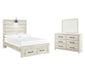 | Details | B192B1: Includes dresser with mirror, Made of engineered wood (MDF/particleboard) and decorative laminate, Wispy white finish over replicated oak grain with authentic touch, 6 smooth-gliding drawers, Drawer interiors are lined with a faux linen laminate for a clean, finished look, Large-scale hardware with dark finish, Mirror attaches to back of dresser, Assembly required, B192B33: Includes headboard, footboard and rails, Made of engineered wood (MDF/particleboard) and decorative laminate, Wispy white finish over replicated oak grain with authentic touch, Large-scale hardware with dark finish, Decorative sconce light, LED with 3 AA batteries, 2 smooth-gliding storage drawers, 2 slim-profile USB charging ports, Power cord included; UL-listed, Foundation/box spring required, sold separately, Mattress available, sold separately, Assembly required, Bed is not compatible with an adjustable base, | |