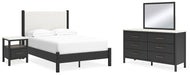 Cadmori Full Upholstered Panel Bed with Mirrored Dresser and Nightstand