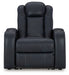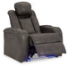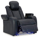 Details One-touch power control with adjustable positions, Easy View™ adjustable headrest and zero-draw USB port, Zero-draw technology only consumes power when the USB receptacle is in use, Corner-blocked frame with metal reinforced seat, Attached cushions, High-quality foam cushions wrapped in poly fiber, Faux leather upholstery, Ambient blue LED lighting on base for a theater-style experience, Armrests with flip-top storage and cup holder, Power cord included; UL Listed