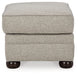 Inspired by the past but rooted firmly in the present, this ottoman complements your transitional seating area. Its versatile upholstery is delightfully detailed for a subtle herringbone effect. Designer touches like bun legs add traditional character. With this ottoman's reliable style and comfort, all you need to do is kick back and relax.
