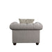 KD Leg, w/1 Pillow • Features: Button Tufted (Back, Arms), Nailhead Trim (Arms & Base), Pillows w/Down Feather Filling • Tight Back & Loose Seat Cushion (1+1) •• CONSTRUCTION •• SEAT: Down Feather & Foam Fill, Frame Solid Wood, Seat Cushion: Welt Trim and Pleated Front (Reversible w/Zipper & Without Hooks ), Cushion Size: 7 Inches Thick (FIRM) • BACKREST: Shelter/Chesterfield, Rolled Back, Button Tufted (Inside Only) • ARMREST: Rolled • Wood Bun-Turned Leg: Espresso Finish, Leg Size: 4" x 4" ••• Material: Fabric (Solid Pattern) •• Pillows: Contrast Shapes & Patterns, Removable Cover (Duck Feather Filling), Pillow Size: 22" x 22"
