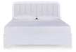 This queen upholstered panel bed is a showstopper, bringing a touch of modern glamour to your sanctuary. A sleek white finish, paired with the cushioned headboard’s off-white fabric and metallic silver accent threads, creates a sophisticated feel. Built-in LED lighting adds a soft glow, making it even easier to get ready in the morning or wind down at night. It’s a simply stunning way to achieve the bedroom of your dreams.