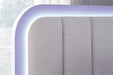 | Details | Includes queen upholstered panel headboard, footboard, rails and roll slats, Made with hardwood solids and MDF substrates, Side rails feature laminated solid hardwood slat support rails (or LVL) with glued and screwed blocking for added strength , White paint finish, Polyester upholstery, Built-in LED lighting; 3-way dimmer switch, Power cord included; UL Listed, Bed does not require additional foundation/box spring; accommodates most zero clearance adjustable bases , Mattress available, sold separately, Assembly required | |