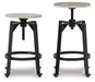 | Details | Made with acacia veneer and engineered wood, Distressed whitewash finish, Metal frame with black finish, Adjustable-height swivel seat, Footrest, Assembly required | |