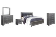 | Details | B214-46: Made of engineered wood (MDF/particleboard) and decorative laminate, Gray finish with replicated wood grain, Faceted chrome-tone pulls and accents, 5 smooth-operating drawers, Drawer interiors are lined with a faux linen laminate for a clean, finished look, Safety is a top priority, clothing storage units are designed to meet the most current standard for stability, ASTM F 2057 (ASTM International), Drawers extend out to accommodate maximum access to drawer interior while maintaining safety, B214-92: Made of engineered wood (MDF/particleboard) and decorative laminate, Gray finish with replicated wood grain, Faceted chrome-tone pulls and accents, 2 smooth-operating drawers, Drawer interiors are lined with a faux linen laminate for a clean, finished look, USB and wireless charging options, Power cord included; UL Listed, Assembly required, B214B1: Made of engineered wood (MDF/particleboard) and decorative laminate, Gray finish with replicated wood grain, Faceted chrome-tone pulls and accents, 6 smooth-operating drawers, Drawers lined with faux linen laminate, Mirror attaches to back of dresser, Includes tipover restraint device, Assembly required, B214B10: Includes headboard, footboard and side rails, Made of engineered wood (MDF/particleboard) and decorative laminate, Gray finish with replicated wood grain, Faux leather upholstery, Faux crystal and faceted chrome-tone metal accents, Accent LED lights with remote to control color and brightness, Power cord included; UL Listed, Foundation/box spring required, sold separately, Mattress available, sold separately, Assembly required, Bed is compatible with an adjustable base, | |