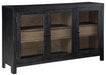 | Details | Made with wood, oak veneer and engineered wood, Black finish outside; warm gray finish inside, 3 glass panel door fronts, Metal knobs with black finish, 2 storage drawers, Assembly required | |