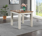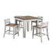 Clean lines and a classic finish combine in this 5-piece Modern Farmhouse Counter dining set. A multi-step rustic white and honey finish brings out the beauty of the oak and acacia veneered wood while the tapered legs, criss-cross back and plank-style table top add authentic details to complement any farmhouse aesthetic. The 24-inch high Counter Stools can serve double-duty for dining or at a 36-inch high Kitchen Counter while the 36-inch high table is a great height for dining, working or just visiting. Quality construction like solid wood chairs will make this a farmhouse favorite for years to come.