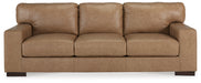 | Details | Corner-blocked frame, Attached back and loose seat cushions, High-resiliency foam cushions wrapped in poly fiber, Genuine leather covers inside areas such as the back, seat and arm cushions; skillfully matched faux leather covers the remaining areas, Top grain leather simulating a wax oil pullup with cracked effect, Lightly buffed and embossed with clear, protective finish to prevent scratches, Due to its natural origin, real leather can show individual characteristics such as healed scars, growth marks, grain variation and shade variation, Natural variations make each hide unique and do not detract from the wearing qualities of leather, Exposed feet with faux wood finish, Platform foundation system resists sagging 3x better than spring system after 20,000 testing cycles by providing more even support, Smooth platform foundation maintains tight, wrinkle-free look without dips or sags that can occur over time with sinuous spring foundations | |