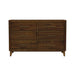 Decorate your nursery with the mid-century modern style of the Malia 6-Drawer Dresser. Built with solid poplar wood with a quality walnut veneer, this dresser doubles in function as a changing table. Six spacious drawers provide ample space for storing your baby’s essentials, while English dovetailing and smooth ball bearing drawer glides mark skillful craftsmanship. Sleek, brass colored metal handles and distinctly tapered feet add charming detail, while an included anti-tip kit enhances safety. For a durable, versatile, and stylish addition to your child’s nursery, the Malia 6-Drawer Dresser delivers.