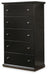 Details Made of wood and engineered wood (MDF/particleboard), Antiqued black finish, Rubbed dark metal hardware, 5 smooth-gliding drawers, Includes tipover restraint device, Small Space Solution, Safety is a top priority, clothing storage units are designed to meet the most current standard for stability, ASTM F 2057 (ASTM International), Drawers extend out to accommodate maximum access to drawer interior while maintaining safety