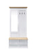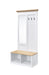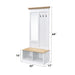 Light oak and white finish complement each other perfectly, giving the whole wooden construction a crisp, clean look. The hall tree features a wooden frame paired with three metal hooks. A body length mirror on the left side provides a full-length view that helps you get ready for the day. It also offers a rectangular bench seat with two open storage compartments underneath for organizing your shoes while saving space.
