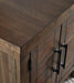 | Details | Made with acacia wood solids, veneer and MDF substrate, Tobacco brown finish, Antiqued bronze-tone hardware, Dual cabinet doors, Assembly required | |