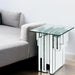Want to make a bold statement, then these Noralie end tables are the perfect solution. With a one of a kind pedestal base that has beautiful acrylic gemstones with clear glass, this piece is sure to stand out. Featuring a sturdy 4mm beveled glass top that can be used for display or function. The gleaming beveled mirror base will reflect the perfect amount of light into any dark space. A matching coffee table is available.