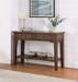 Contemporary Lodge styling in a relaxed but beautiful hickory-veneered Serving Table, Ora offers a great way to add display, storage and serving area to any dining area. This Serving Table features two large-scaled drawers that are great for storing placemats or dinner napkins with pewter cup pulls that add a note of nostalgia to the collection. The 58-inch scale makes it ideal as a side table in a Dining Room and also works well as a Hall Console or Entertainment piece. The rustic tapered legs gives the table a primitive feel that is is comfortable and charming.