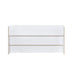 Sleek, modern, and functional are what best describe the Perse collection. The crisp white finish gives off the illusion of a bigger room. The low-profile panel bed features a storage headboard to display various goods. The case goods offer plenty of storage to keep a tidy room. With modern touches such as round chrome hardware and metal hairpin legs to match.