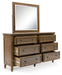 | Details | B787B2: Includes upholstered headboard, panel rails and bench footboard with slats, Made with hardwood solids, veneers and MDF substrates, Brown finish, Polyester upholstery, Nailhead trim, Turned feet, Foundation/box spring required, sold separately , Mattress available, sold separately, Assembly required, B787B1: Includes dresser and mirror, Made with hardwood solids, veneers and MDF substrates, Brown finish, Oil-rubbed bronze-tone knobs, 6 drawers with fully finished interior, dovetail construction and heavy duty ball-bearing side glides (top drawers felt lined), Turned feet, Mirror attaches to back of dresser, B787-46: Made with hardwood solids, veneers and MDF substrates, Brown finish, Oil-rubbed bronze-tone knobs, 5 drawers with fully finished interior, dovetail construction and heavy duty ball-bearing side glides (top drawer felt lined), Turned feet, B787-93: Made with hardwood solids, veneers and MDF substrates, Brown finish, Oil-rubbed bronze-tone knobs, 2 drawers with fully finished interior, dovetail construction and heavy duty ball-bearing side glides (top drawer felt lined), Turned feet, 110V power supply with USB-A and USB-C charging ports, Power cord included; UL Listed, | |