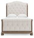 | Details | B944B2: Includes upholstered sleigh headboard, upholstered sleigh footboard, sleigh rails and slats, Made with solid wood frames, solid wood blocking and foam, Light brown finish with glazed antiqued look , Polyester upholstery, Aged bronze-tone nailhead trim, Foundation/box spring required, sold separately, Mattress available, sold separately, Assembly required, B944B1: Includes dresser and mirror, Made with hardwood solids, oak and ash veneer, MDF substrates and cast resin components , Top with inlaid ash veneer border, Light brown finish with glazed antiqued look , Metal hardware with aged bronze-tone finish , 9 drawers with fully finished interior, dovetail construction and heavy duty ball-bearing side glides, Mirror attaches to back of dresser, B944-46: Made with hardwood solids, oak and ash veneer, MDF substrates and cast resin components, Top with inlaid ash veneer border, Light brown finish with glazed antiqued look, Metal hardware with aged bronze-tone finish, 5 drawers with fully finished interior, dovetail construction and heavy duty ball-bearing side glides (top drawer felt lined), B944-93: Made with hardwood solids, oak and ash veneer, MDF substrates and cast resin components, Top with inlaid ash veneer border, Light brown finish with glazed, antiqued look, Metal hardware with aged bronze-tone finish, 3 drawers with fully finished interior (top drawer felt lined), dovetail construction and heavy duty ball-bearing side glides, 110V power supply with USB-A and USB-C charging ports, Power cord included; UL Listed, | |