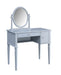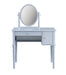 Dreamy, elegant, and classy, the Rabila Vanity Set will satisfy all your needs. Vanity mirror, table and stool are all included to create a dedicated space you deserve. The oval mirror sitting atop the table provides multiple angle reflection, while a storage drawer and single door cabinet under the tabletop offer ample space for your makeup and jewelry storage. A lovely stool with soft fabric gives you comfortable support. Muted gray finish complements this woodcraft vanity set perfectly, making it blend into any room style.