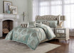 A velvet embossed frame design is strategically placed on the front of the comforter and quilted to enhance the detail, creating an extra touch of style, while the mink faux fur accessories complement the entire collection. The shams and pillows have hidden zippers. The decorative pillows have removable covers and waterfowl feather fill.