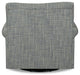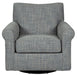 Sporting a tantalizing tweed weave fabric in such a soothing blue hue, this swivel glider accent chair gives the classic roll arm chair a modern twist. Smooth, 360-degree swivel caters to your comfort—and your viewing pleasure. Gentle glider feature is designed to rock your cares away.
