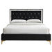 Upgrade your entire bedroom space with this modern and sophisticated masterpiece. It features a upholstered headboard with crystal-like button tufted details that add a modern glamour to this piece. Faux marble printed trim accent surrounding the headboard sets a stark contrast to soft upholstery. Stylish metal legs give the bed an elegant support. Express your style and make a bold statement in your personal space.