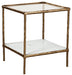 Classic in design with a dash of textural appeal, this accent table provides both flair and function. The glass tabletop offers the perfect perch for a lamp, while the white marble lower shelf is ideal for resting trendy coffee table books and other decorative pieces. An antiqued brass-tone finish on the frame has a rustically luxe look that remains versatile, suiting spaces from casual to contemporary.