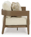 | Details | Rust-resistant aluminum frame with durable powder coated finish, Powder coated aluminum resists rusting and fading, Wood-look finish, All-weather foam cushion core wrapped in soft polyester, Zippered cushions and throw pillows covered in solution-dyed high-performance fabric, Nuvella+ is an outdoor fabric that can be cleaned and offers enhanced UV resistance, Clean fabric with mild soap and water, let air dry; for stubborn stains, use a solution of 4 oz. bleach to 28 oz. water, Stainless steel hardware, 2 Nuvella throw pillows included, Designed to withstand the harsh elements of the outdoors | |