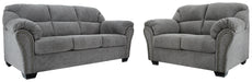 Why sacrifice comfort for style (or style for comfort) when you can have the best of both in this sofa and loveseat in pewter gray. Elements include a chic divided-back design and pillow top wrapped armrests that make nodding off all too easy. Calling attention to the elegantly flared armrests—black nickel-tone nailhead trim for a punch of cool character.