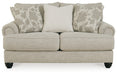 This seating package has an alluring look that's guaranteed to turn heads. Richly textured fabric in a light, easygoing hue is enhanced by even lighter flax peeking through. Distinctive roll arms add a dab of debonair, while indulgently plush cushions cradle you softly. Sit back and relax in comfort and style, with plenty of room to stretch out and unwind at the end of a long day.
