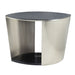 KD, Drum End Table • Storage: Open Compartment (Bottom Shelf) •• CONSTRUCTION •• Top: 8mm Tempered Glass with Printed Faux Stone (Fixed Top/No Apron) • Metal Drum Frame: Satin Plated Finish, Metal Tube, Base Size: 21 Inches Height (531mm)