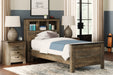 | Details | Includes bookcase headboard, footboard and rails, Made of engineered wood (MDF/particleboard) and decorative laminate, Warm rustic plank finish over replicated oak grain with authentic touch, Nailhead accents, Foundation/box spring required, sold separately, Mattress available, sold separately, Assembly required, Bed is compatible with an adjustable base | |