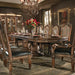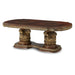 Gather around the Villa Valencia Rectangular Dining Table and enjoy its masterful craftsmanship. The intricate and elaborate carvings throughout this grand piece immediately evoke visions of a Tuscan vineyard by the Mediterranean Sea. The two elaborate pedestals supporting the table are substantial and ornate. With three 20-inch extension l eaves, this rectangular dining table is perfect for large family gatherings and dinner parties.