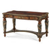 Featuring a gorgeous traditional style and flaunting a classic chestnut finish, the Villa Valencia Writing Desk is perfect for adding a touch of class to your home office or study. This beautiful writing desk is made from birch solids with pecan, cherry, and elm burl veneers. The desk is supported by four sturdy marble leg columns and turned, tapered feet. The marble columns have carved acanthus leaf accents that coordinate beautifully with the molded trim of the edge of the tabletop. The four legs of the writing desk are connected to one another with a crescent-shaped base. The three drawers provide ample storage for any of your important documents.
