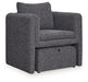 Create a stylish retreat with this space-saving accent chair and ottoman set. Its sophisticated charcoal and black upholstery adds modern elegance to small apartments, living rooms, dorms and more. Curl up and relax in the cozy embrace of the chair— and when you need to put your feet up, simply pull out the ottoman that tucks neatly underneath. The best part? This set arrives fully assembled.