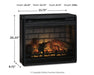 | Details | Includes TV stand, 2 piers, bridge and electric fireplace insert (W100-01), Made with engineered wood (MDF/particleboard) and decorative laminate, Replicated white wash worn through paint; TV stand top with replicated wood grained block pattern with an authentic touch, Nickel-tone hardware, TV stand with 2 storage cabinets (each with an adjustable shelf) and removable/adjustable center shelf, Each pier has 2 open shelves and cabinet door revealing single-shelf storage, Cutouts for wire management and ventilation, Electric fireplace insert provides up to 5,386 BTU/1,500W and warms up to 1,000 square feet (heats larger rooms), 7-level temperature setting; 5 levels of flame brightness; LED-lit multi flame display operates with or without infrared heat; realistic-looking log set with dynamic glowing embers, Remote control with LED display, Timer function with programmable ranges from 10 minutes to 9 hours; overheating control device, Power cord included; UL Listed, Assembly required; simply remove the center shelf and back panel to make room for the fireplace insert | |