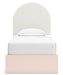 Pretty in pink. This twin upholstered panel bed with storage keeps the spirit of your home’s modern aesthetic while suiting all your young one’s needs. Its cozy-cute upholstery and subtle blush finish bring a playful, charming vibe to bedtime. Made for her and styled for you, it’s a lovely addition to a beautifully chic child’s bedroom.